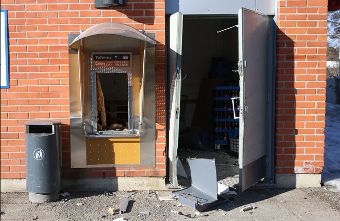 Paikalle menneet poliisipartiot totesivat, että kauppaliikkeen seinässä kiinnitettynä ollut automaatti on ilmeisesti räjäytetty irti seinästä ja viety pois paikalta auton perässä vetämällä.