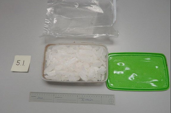 Poikkeuksellisen suuri määrä kidemäistä metamfetamiinia