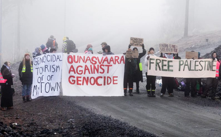 Ounasvaara against genocide -nimisen ryhmän mediayhteyshenkilö Lilja Niinimäki kertoi Lapin Kansalle aamulla, että noin 20–25 henkilön ryhmä mielenosoittajia esti työntekijöiden pääsyn työmaalle.